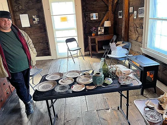 Rob LoMascolo with some of the artifacts found in the debris at the 1795 Walter Wood Law Office / Post Office site.